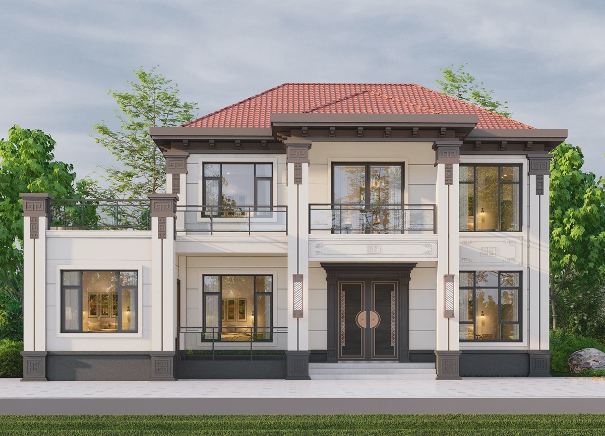 夹江005 两层新中式(11.36x11.76米)-【易设计】